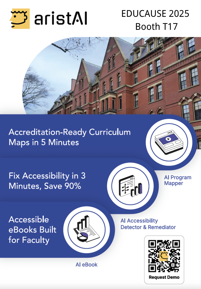 If you're working on accreditation, accessibility, or digital course quality, come find AristAI at Booth T17.